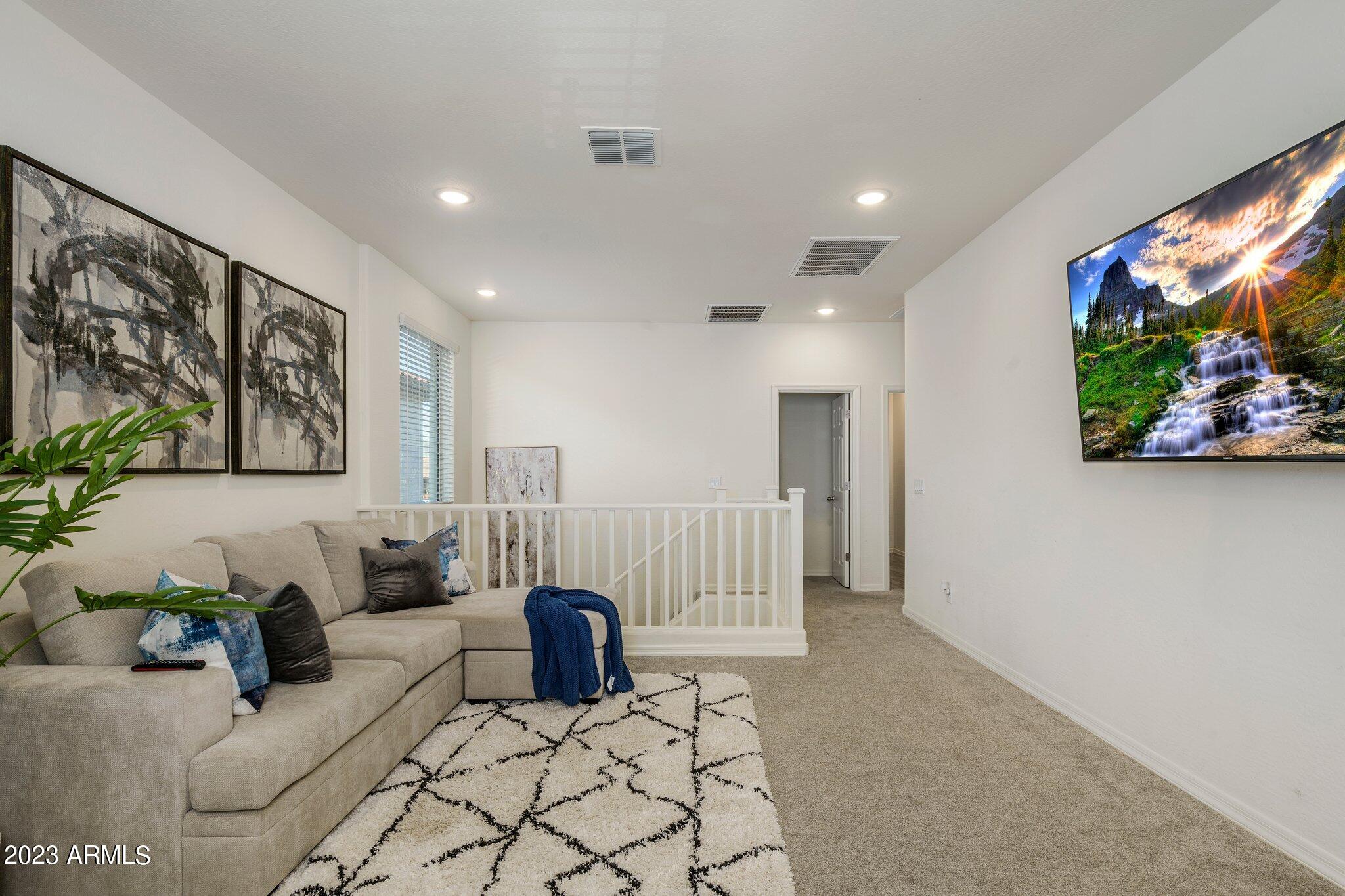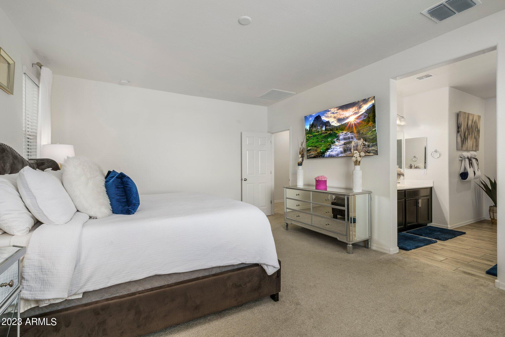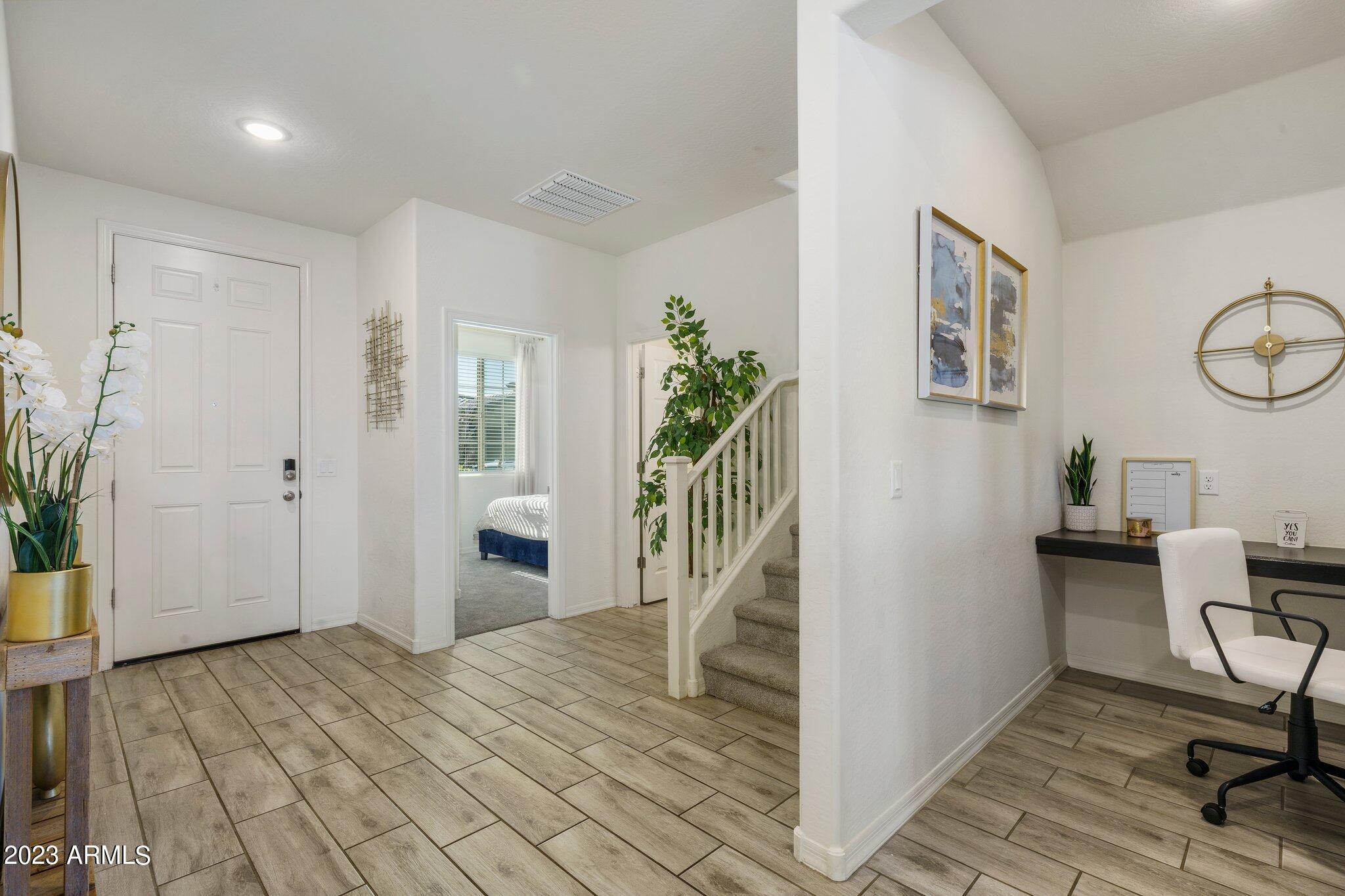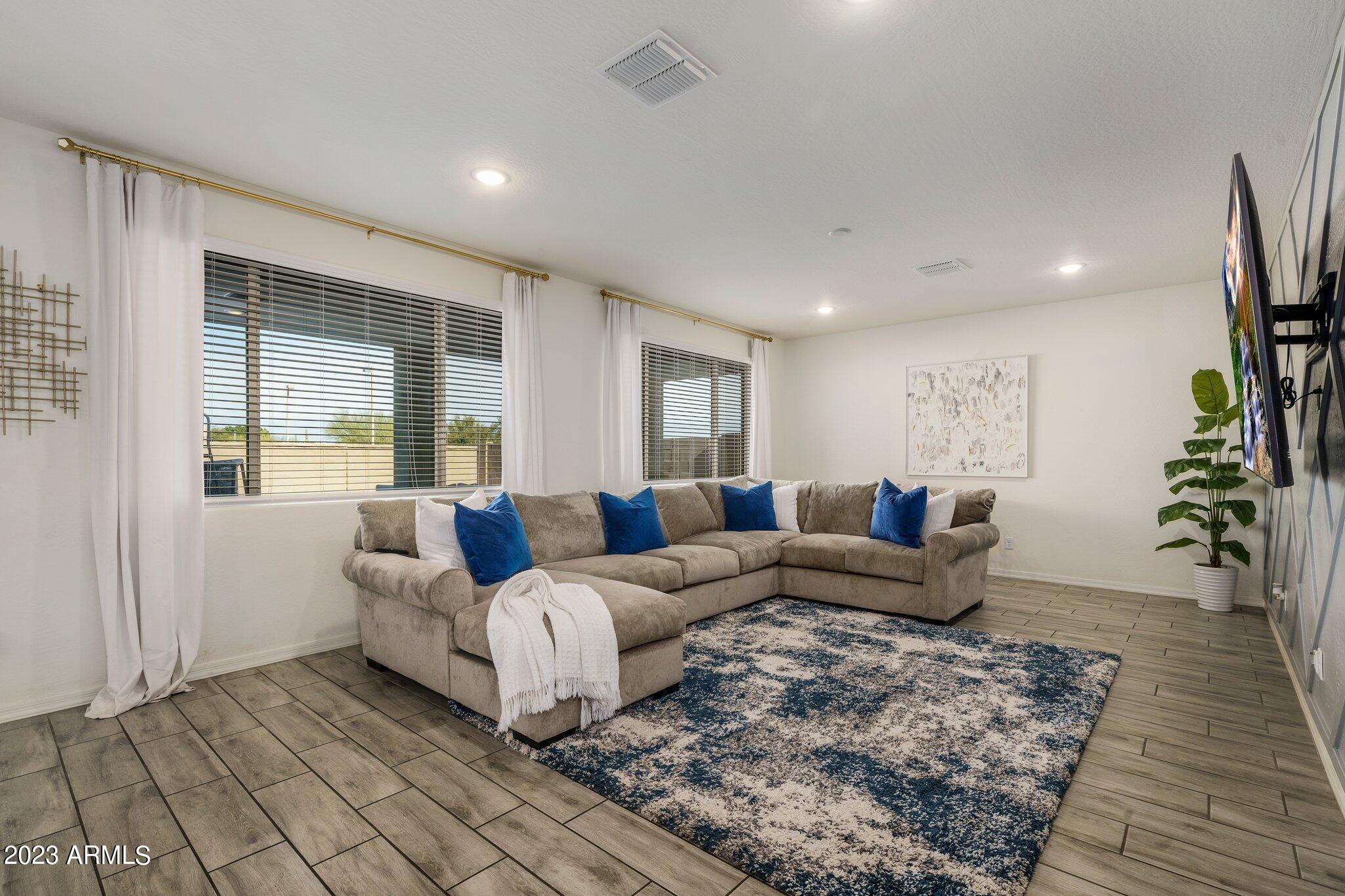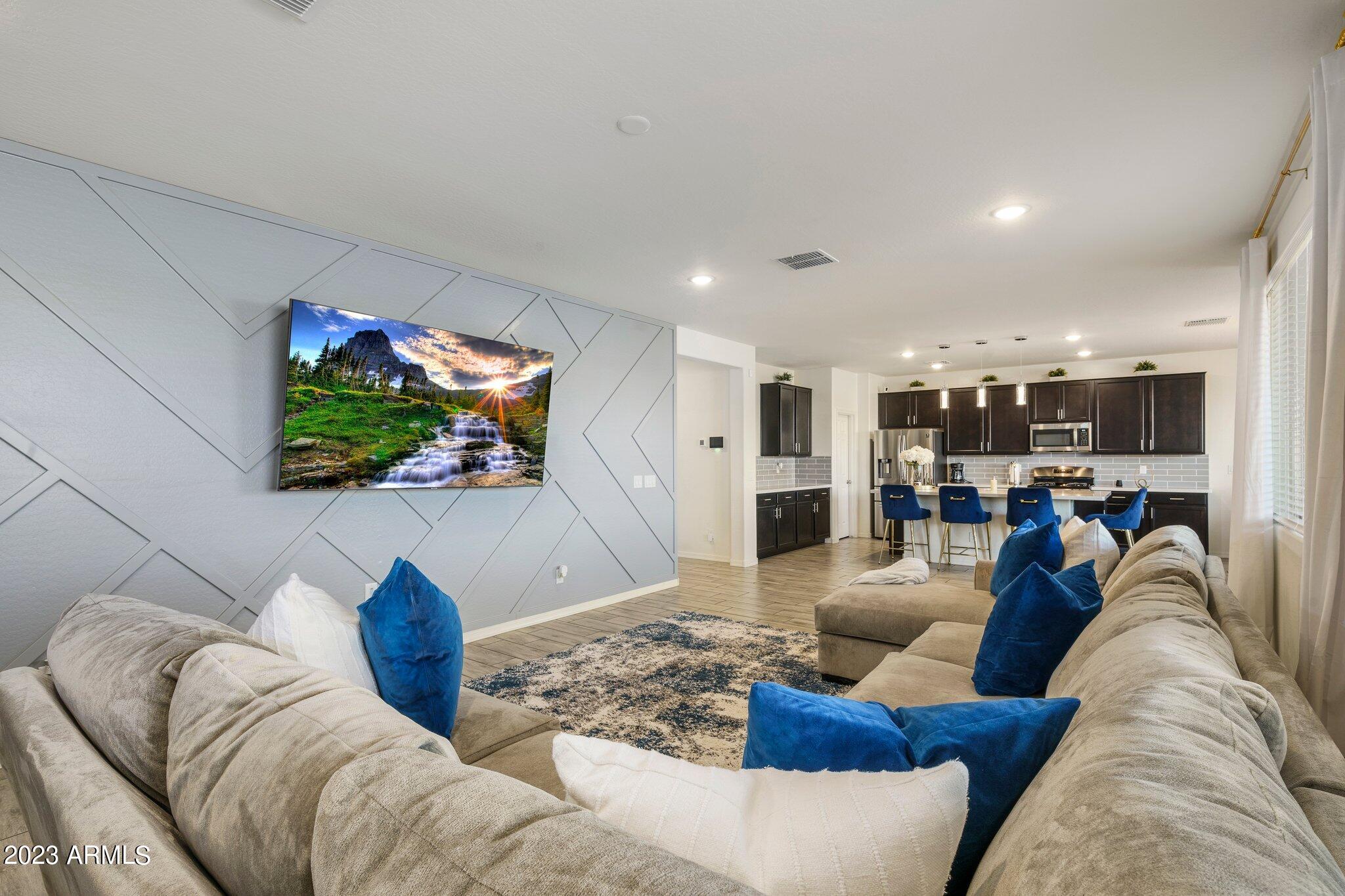 Welcome to Verrado! This turnkey K. Hovnanian home offers 5 bedrooms with a loft, 3 bathrooms and just over 2800 square feet. The color palate is beautiful and features quartz countertops, stainless appliances and wood look tile. Cooks will love the gas range, large island and walk-in pantry. The open floor plan lets in plenty of natural light and the 1st floor bed and bath would be an excellent mother-in-law suite or office. Upstairs the owners suite is spacious and open with a large walk in closet. Rounding out the top floor are the bright and airy loft, an additional 3 bedrooms and 1 bath. Out back is a nicely landscaped backyard, covered patio and beautiful mountain views. Minutes away is Verrado's Main Street with shopping, dining, the swim park, golf club, access to trails and more! and more.